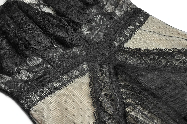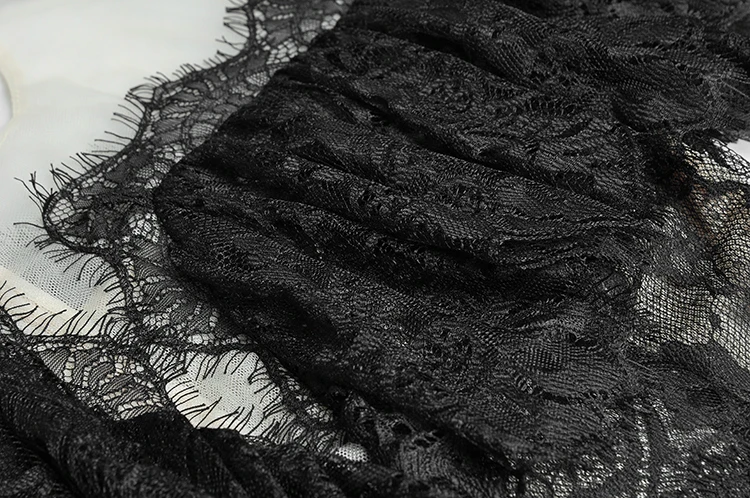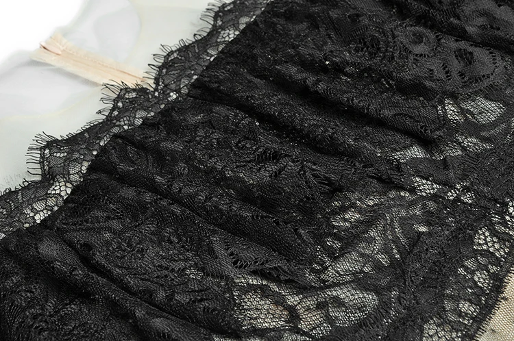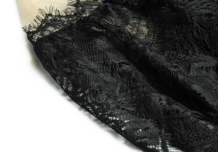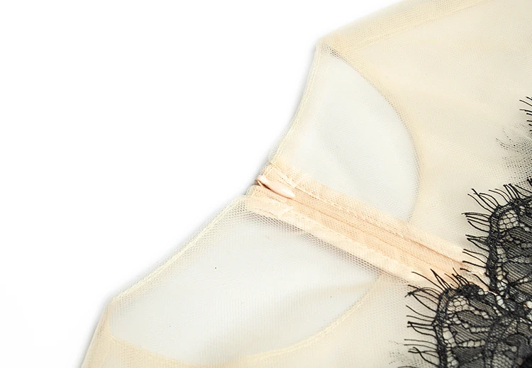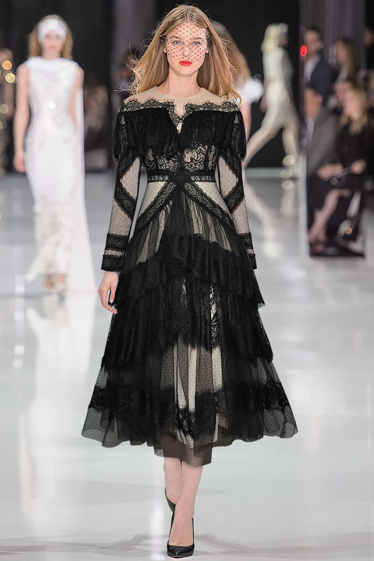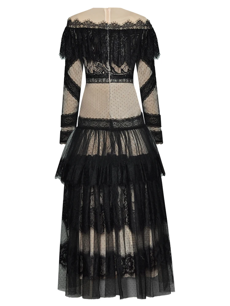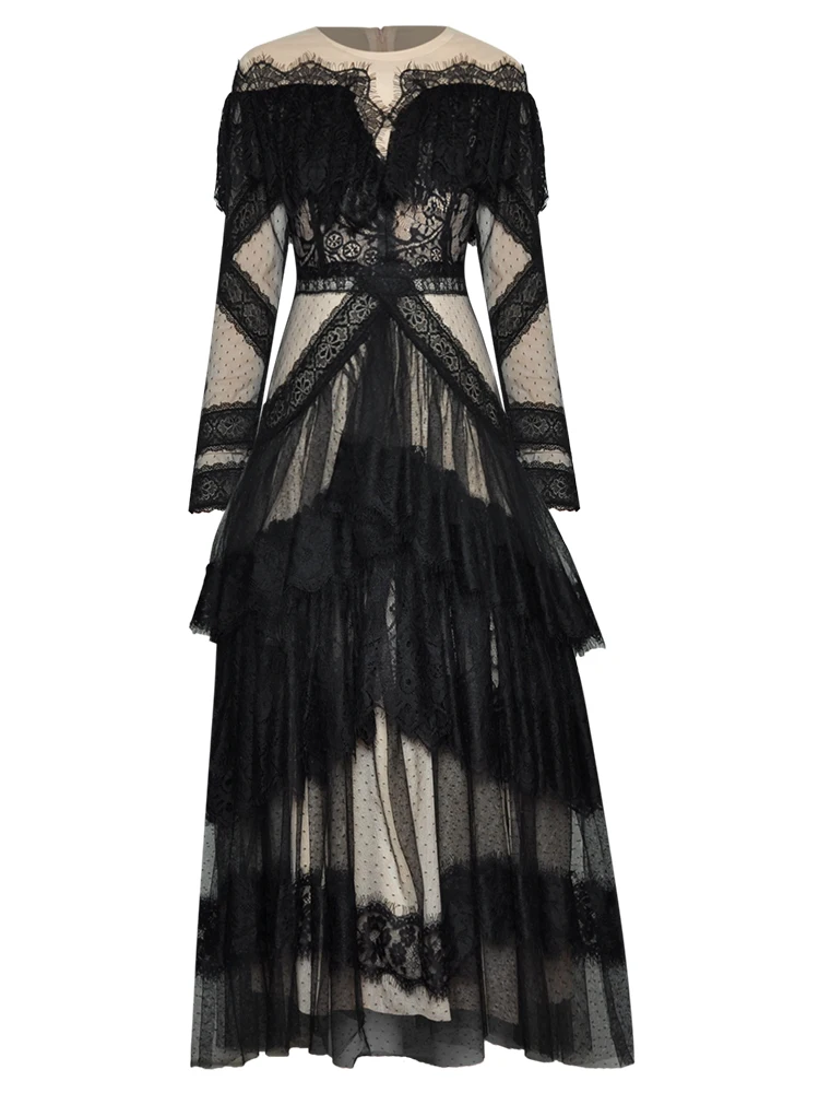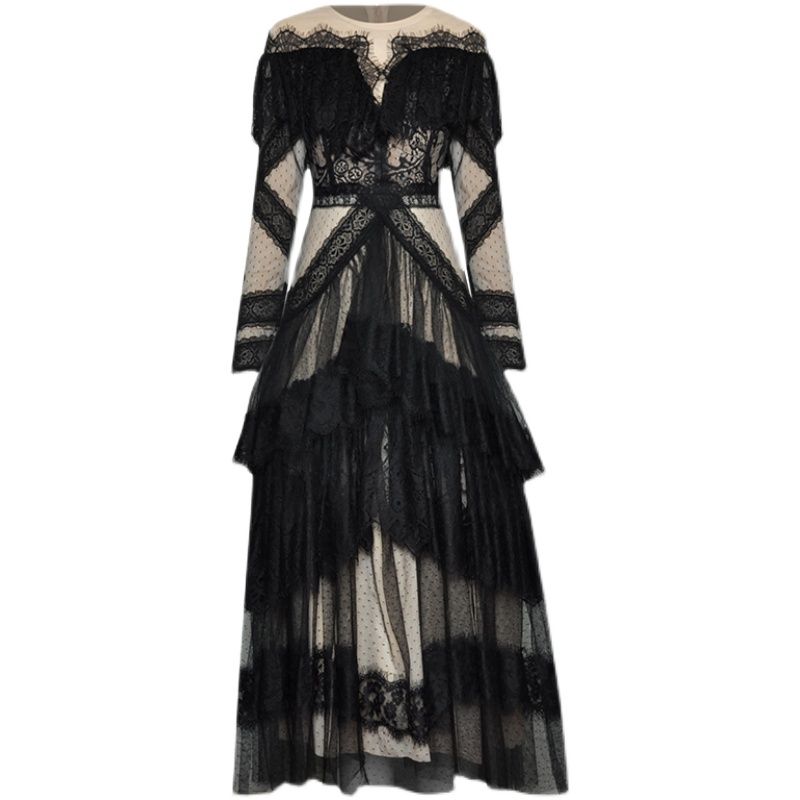 Round neck long sleeves mesh perspective lace splicing ruffles large swing long dress plus size dress