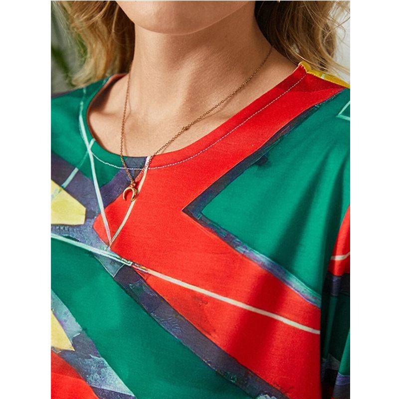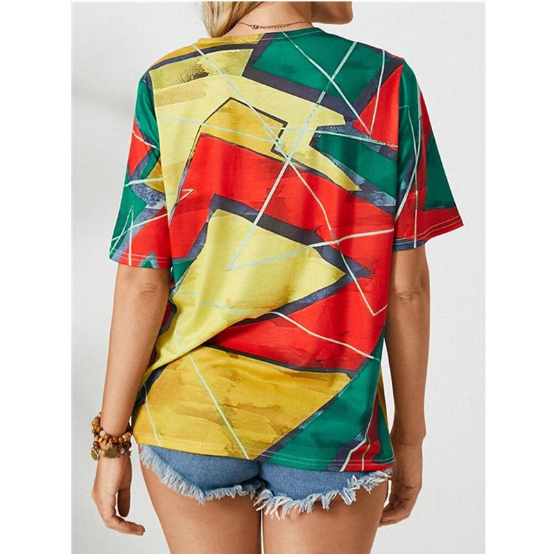 Round Neck Print Loose Casual Short-sleeved Ladies T-shirt Pink 2XL