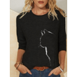 Round Neck Printing Long-sleeved Casual Top T-shirt Women Black 2XL