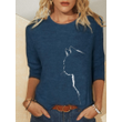 Round Neck Printing Long-sleeved Casual Top T-shirt Women Blue L