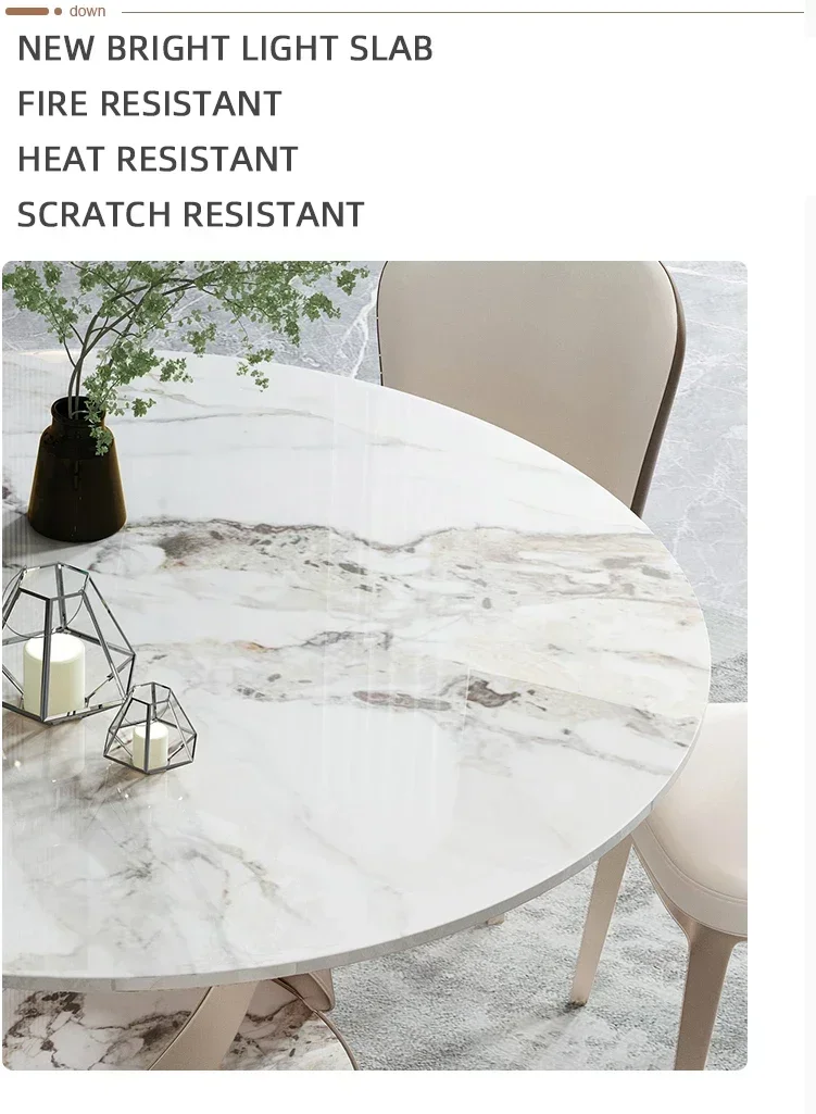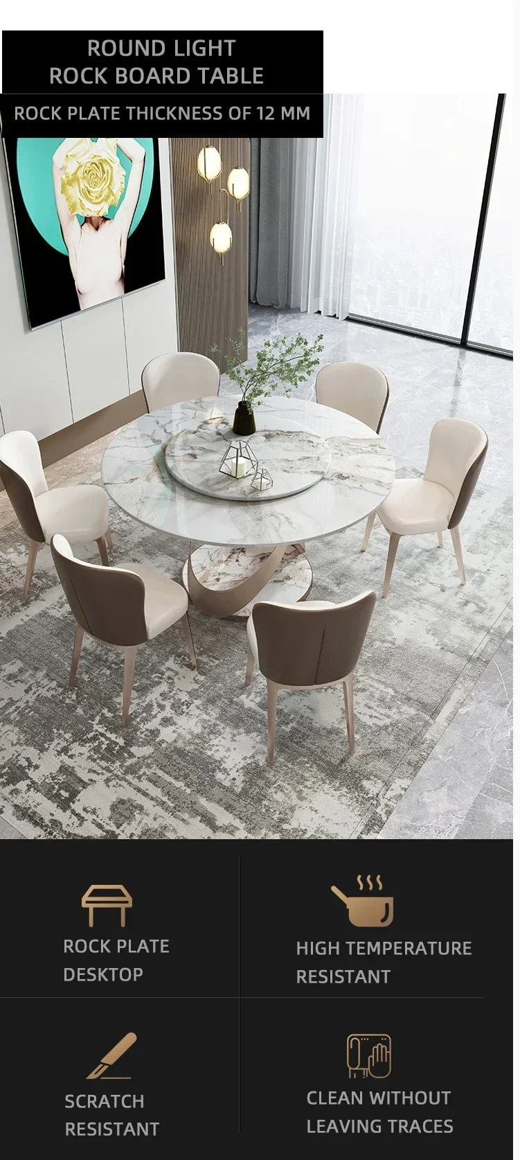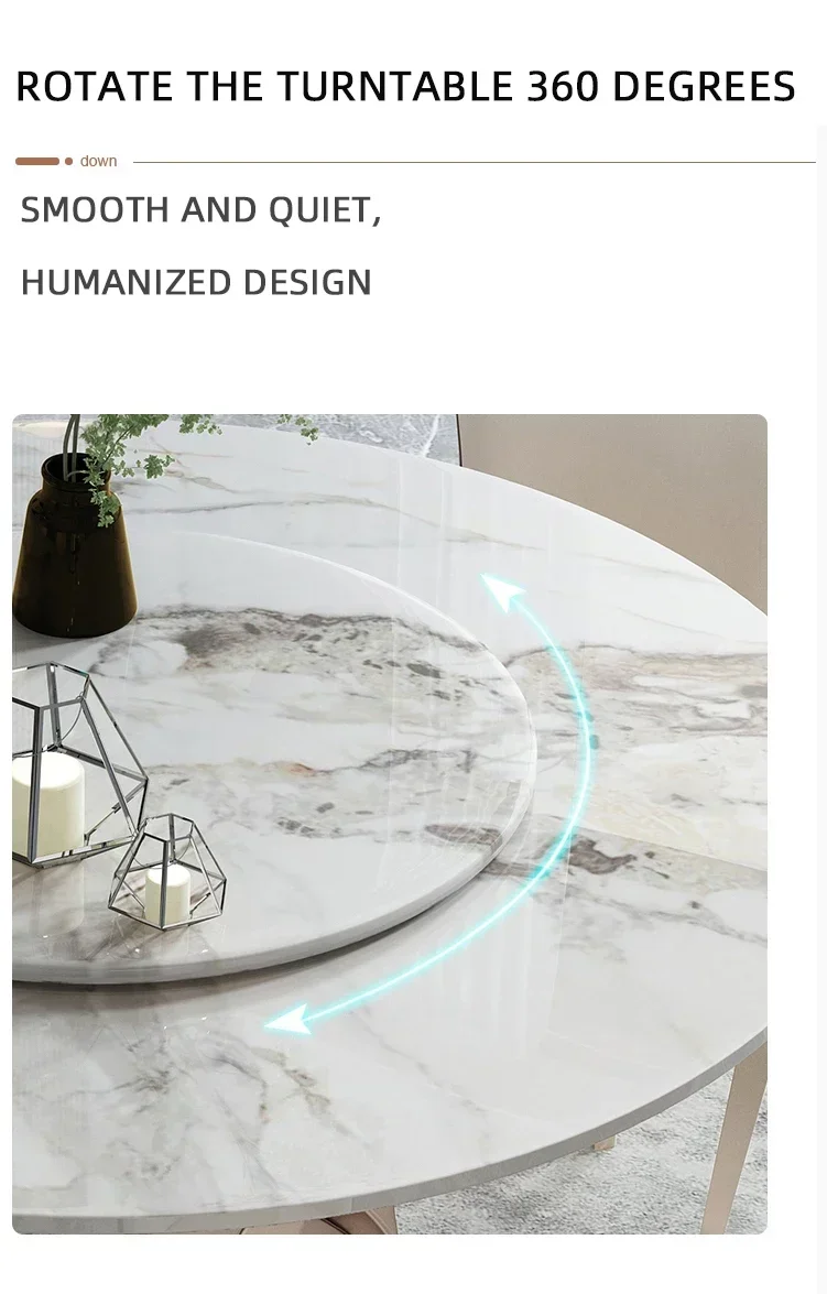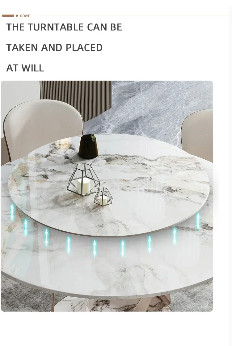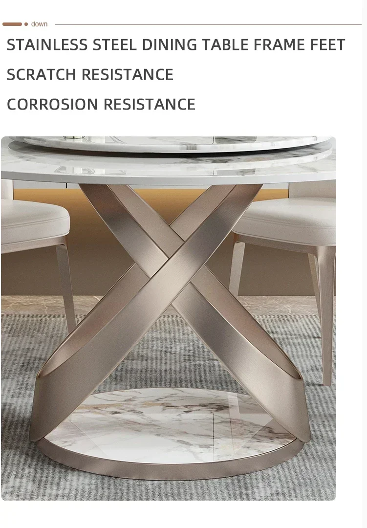 Round Rock Plate Tables Dining Table Rose Gold Brushed Stainless Steel Rotary Sintered Stone Hotel Mesa De Comedor Marble White