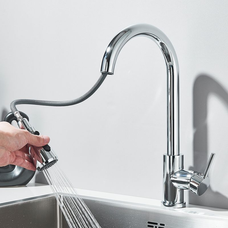 Brushed Nickel Mixer Faucet Single Hole Pull Out Spout Kitchen Sink Mixer Tap with Stream Sprayer Head Chrome/Black Kitchen Tap