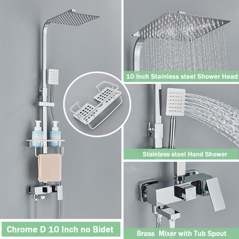 Rozin Rainfall Bathroom Shower Faucet Set With Bidet Mixer Tap Black Wall Mounted Brass Bath Cabin System With Rack,Tub Spout