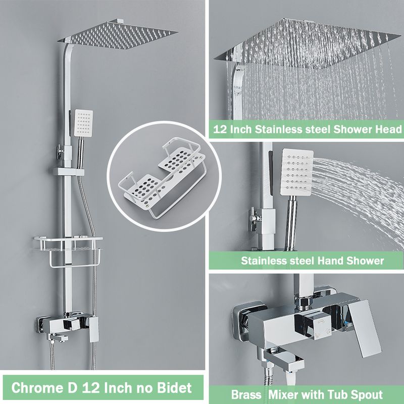Rozin Rainfall Bathroom Shower Faucet Set With Bidet Mixer Tap Black Wall Mounted Brass Bath Cabin System With Rack,Tub Spout