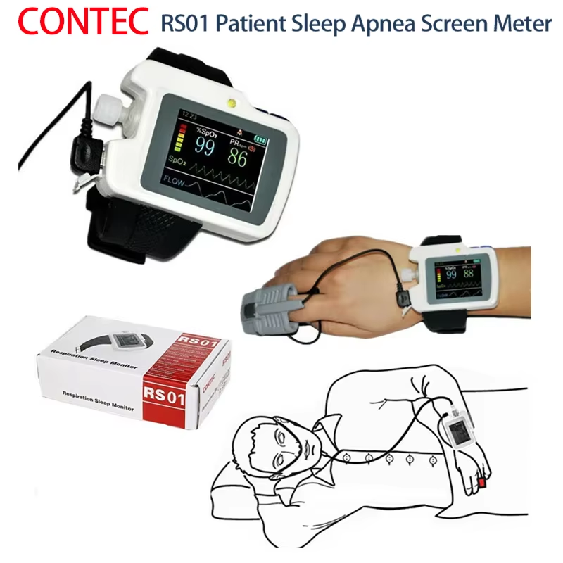 RS01 Patient Sleep Apnea Screen Meter Nose Air Flow Wrist Respiration Sleep Monitor Spo2 PR Alarm Nasal Cannula Record Software