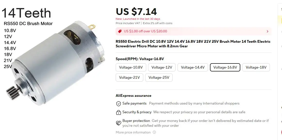 2. Confirm the voltage of your motor (DC10.8V-25V) and choose a motor with the same or similar voltage.