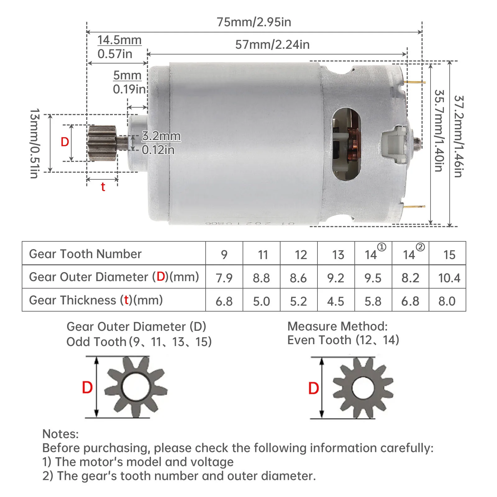 - The RS550 motor has multi voltage and multi gear teeth combinations, which can be adapted to many electric power drills on the market, but there are too many brands and models of power tools, which makes it impossible for us to identify them all, so please compare them carefully before an order.