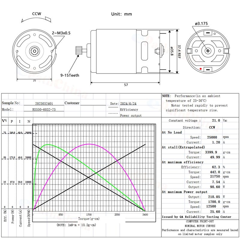 1. Confirm your motor model is RS550 or motor diameter(about 37.2mm), and motor body length(about 57mm), and total length(about 75.1mm).