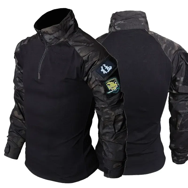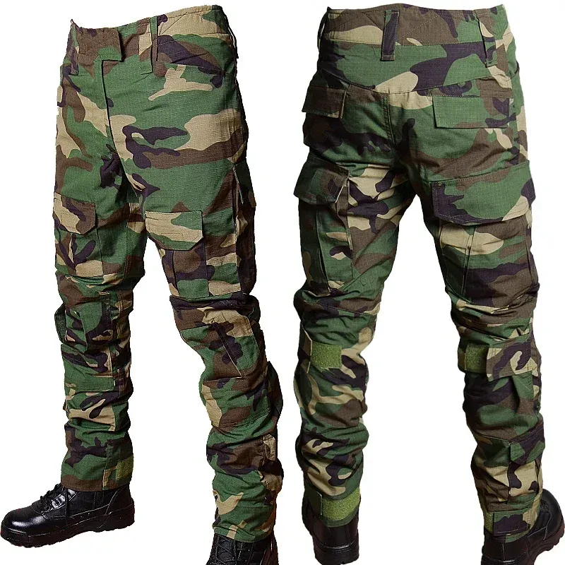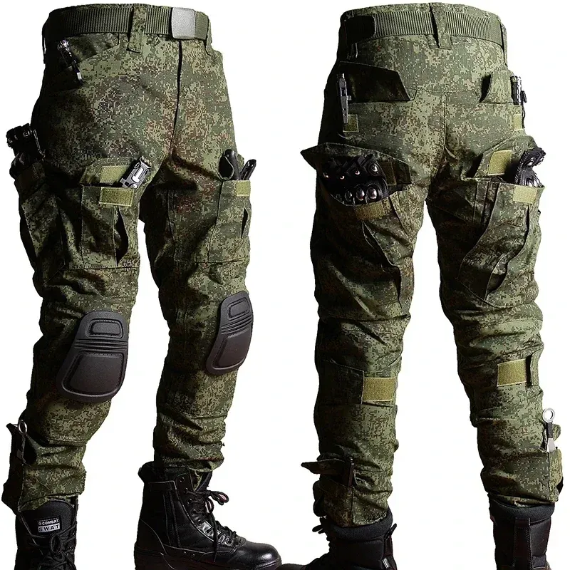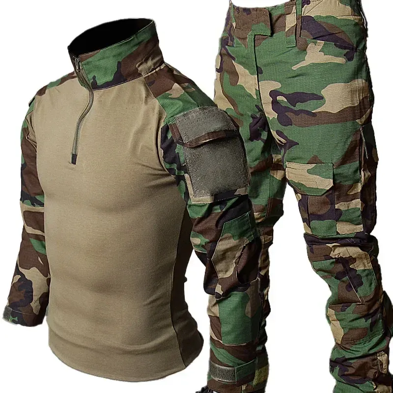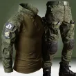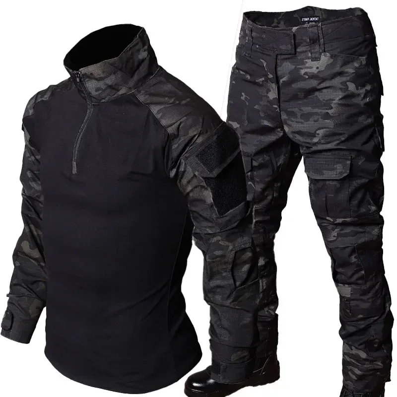 RU Camo Tactical Sets Men Outdoor Breathable Long Sleeve Tshirts+Multi-pocket Straight Cargo Pant 2 Pcs Suit Training Combat Set