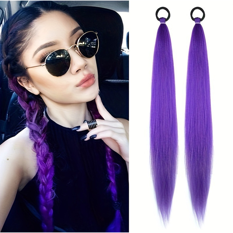 Ru mi Synthetic Braids Purple Hair Ponytail Costume Hairstyle 26inch Long Ponytail with Clips for Kids Girls Halloween Christmas