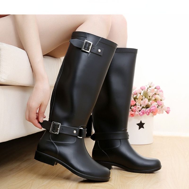 Rubber Boots for Women Waterproof Work Fashion Back Zipper Round Toe High Rain Boots Woman Water Shoes Botas De Caza Espanolas