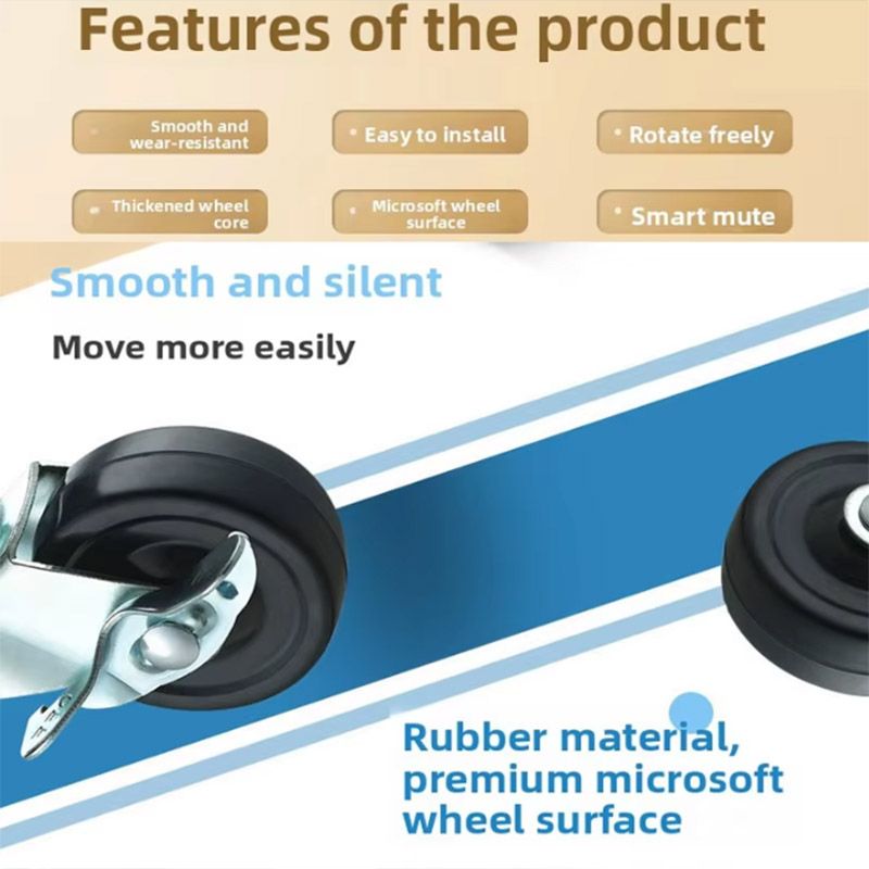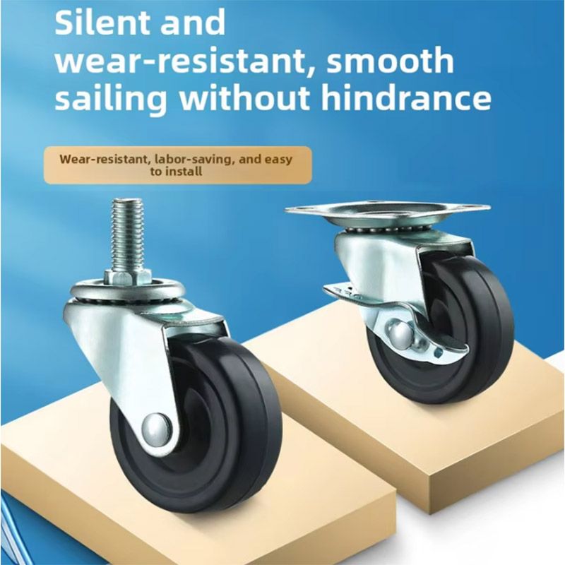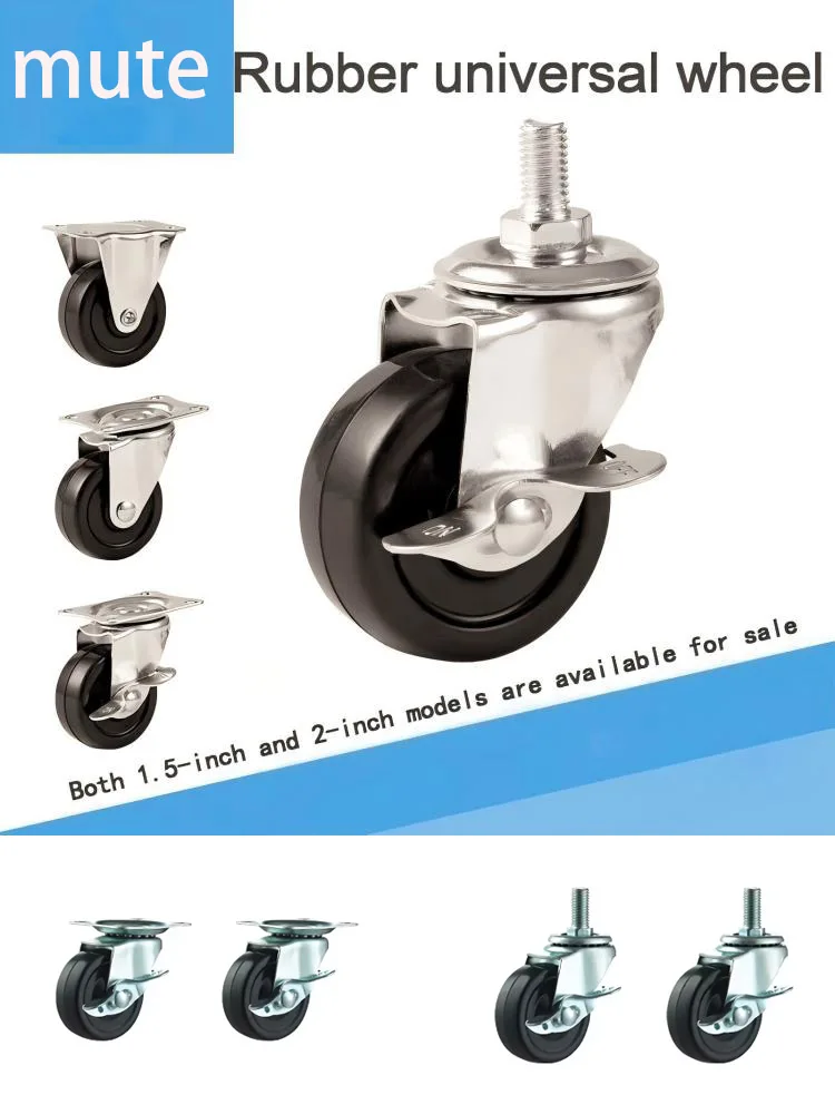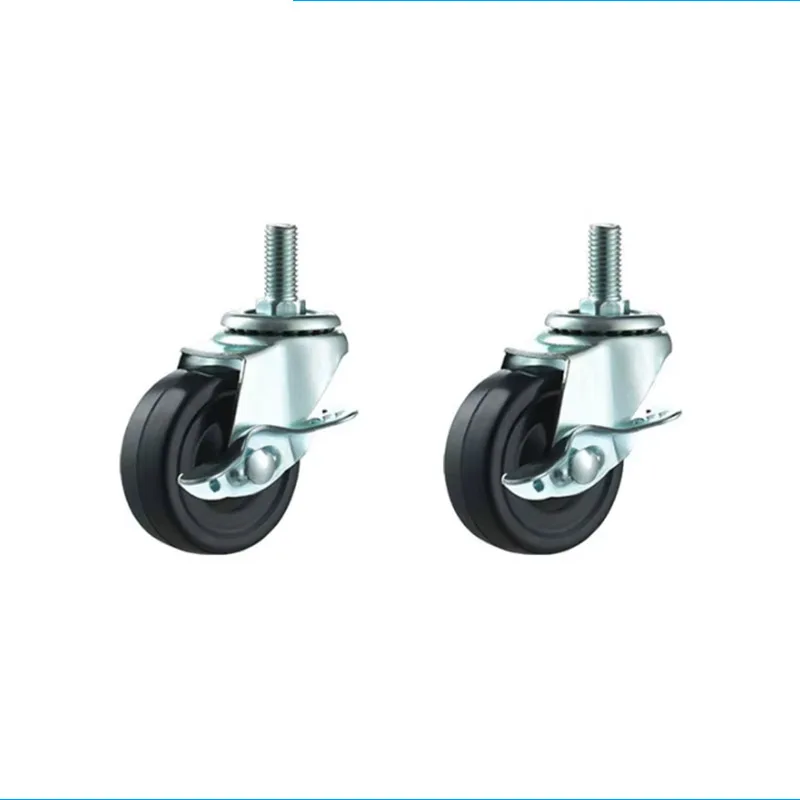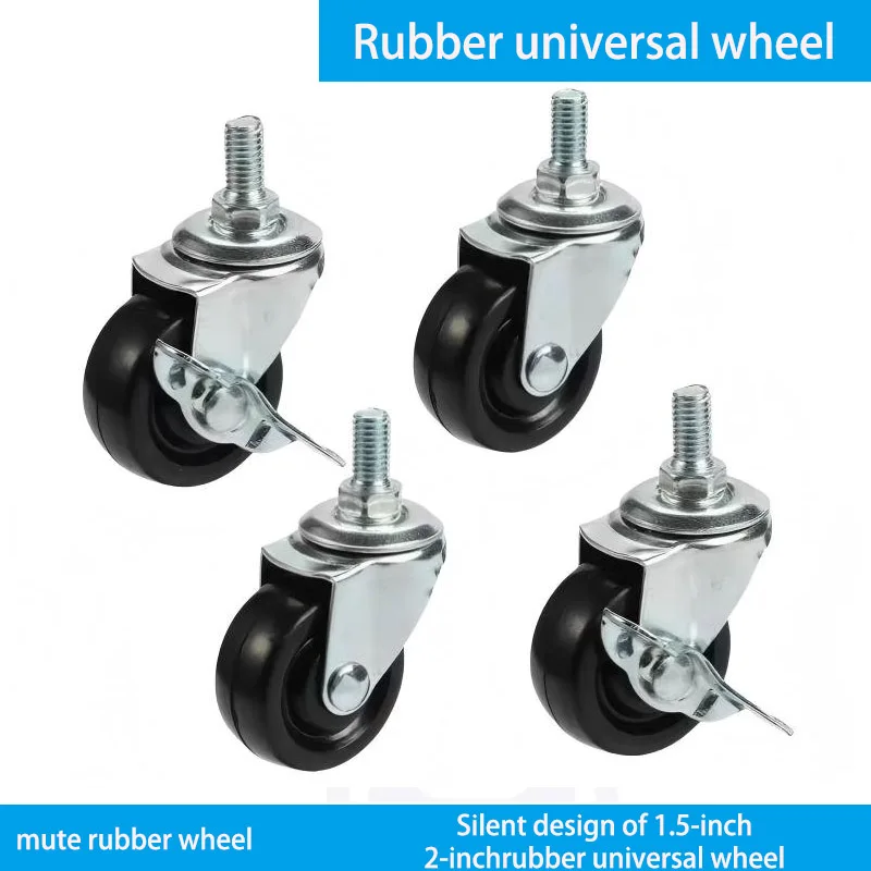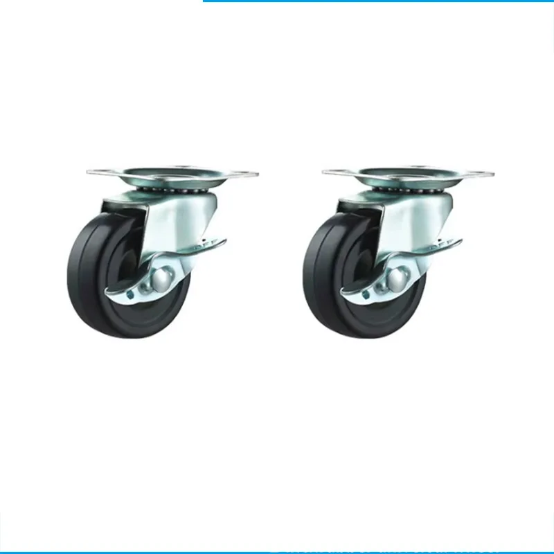 Rubber Wheels 2Pcs 1.5-2-inch Furniture Casters with Brake Rubber Rotating Casters Small Car Silent Casters Universal Wheels
