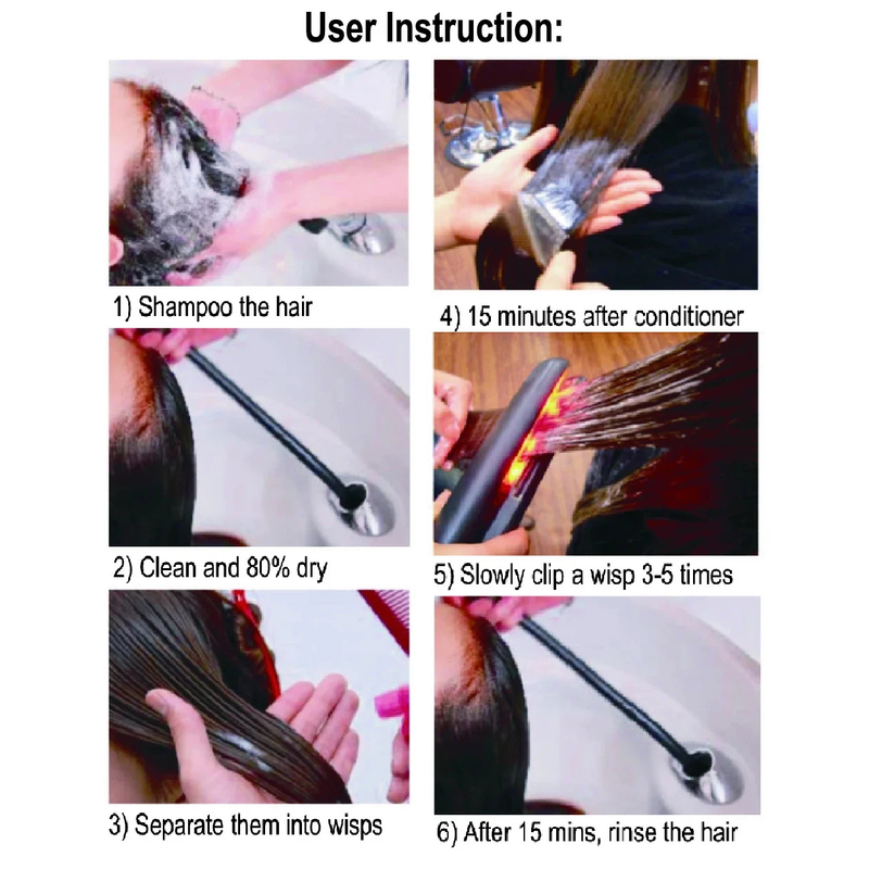 When using the hair care iron, the far infrared ray generates power to divide the protein into small molecules, and make them rearrange to connect more closely. As a result, compared with hair care without the assistance of infrared function, the hair absorb the protein much more efficiently, and the hair become more healthy, smooth and shiny.