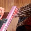 Applying the theory of electronic vibrating, we install a ceramic vibrating machine inside the hair care iron to generate ultrasonic wave of high frequency, whose vibration is up to 30,000 times each second. In this way, the structure of the conditioner or hair oil will be atomized and vibrated into minimum particles that likes mist. Cooperated with the function of far infrared (but not high heat), we are able to gain the ideal effect of both reducing expansion of hair cuticle and repairing damaged hair.