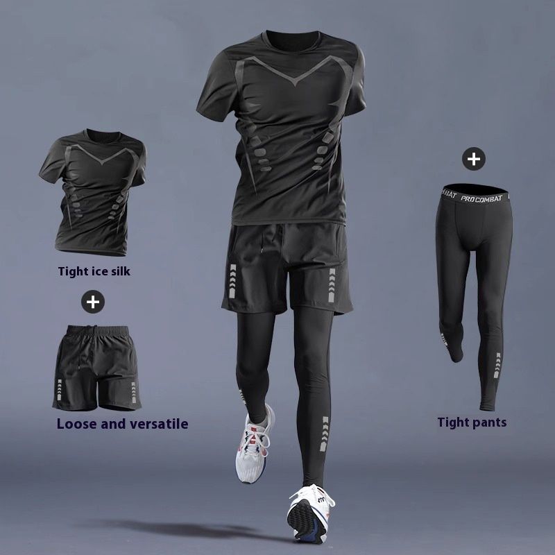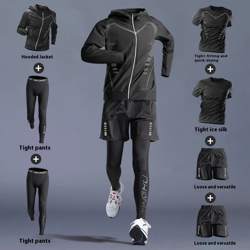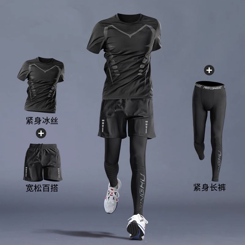 Color: sports three-piece suit [quick-drying breathable] long sleeve, running three-piece set [quick-drying breathable] long sleeve, fitness three-piece set [quick-drying breathable] long sleeve, sports three-piece suit [quick-drying breathable] short sleeve, running three-piece set [quick-drying breathable] short sleeve, fitness three-piece set [quick-drying breathable] short sleeve, running four-piece set [quick-drying breathable] short sleeve, running five-piece set [quick-drying breathable] One set of worry-free, sports five-piece set [quick-drying breathable] One set of worry-free, fitness five-piece set [quick-drying breathable] One set of worry-free, training five-piece set [quick-drying breathable] One set of worry-free, exercise seven-piece [quick-drying breathable] One set of worry-free, running seven-piece [quick-drying breathable] One set of worry-free
