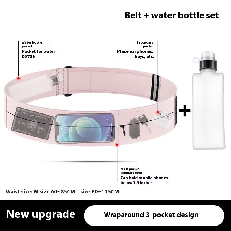 Running Mobile Phone Bag Waist Bag Multifunctional Fitness Marathon Sports Equipment Pink Three Pockets S