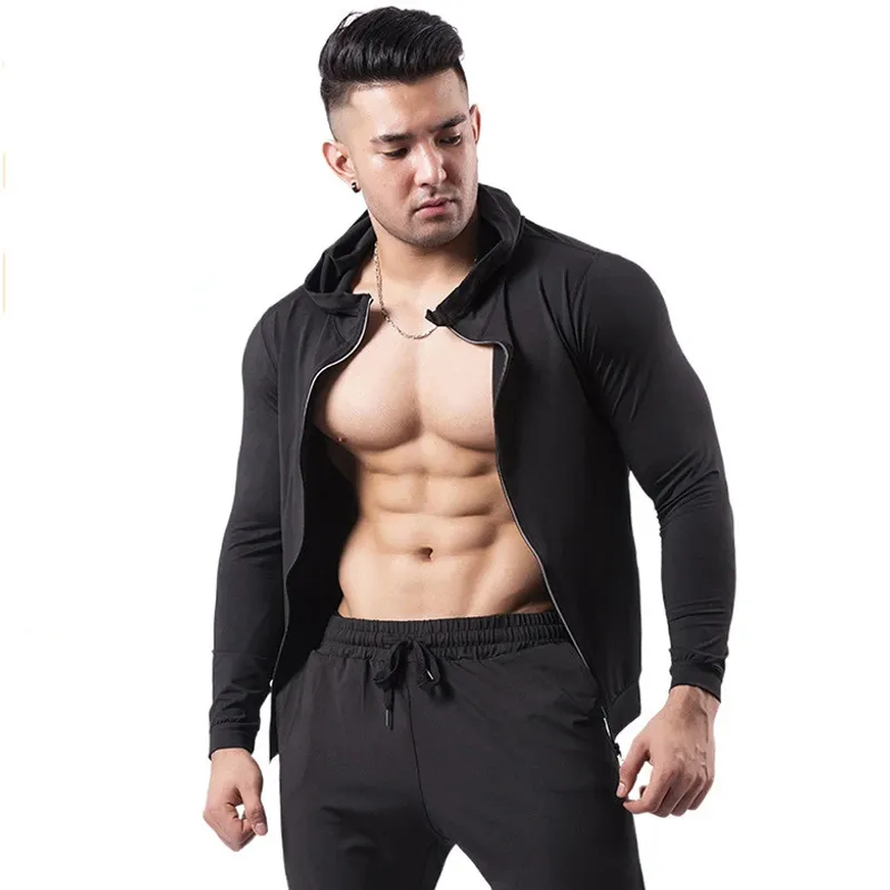 Running sports jacket hooded men's fitness morning run basketball training quick drying tight fitting jacket breathable jacket