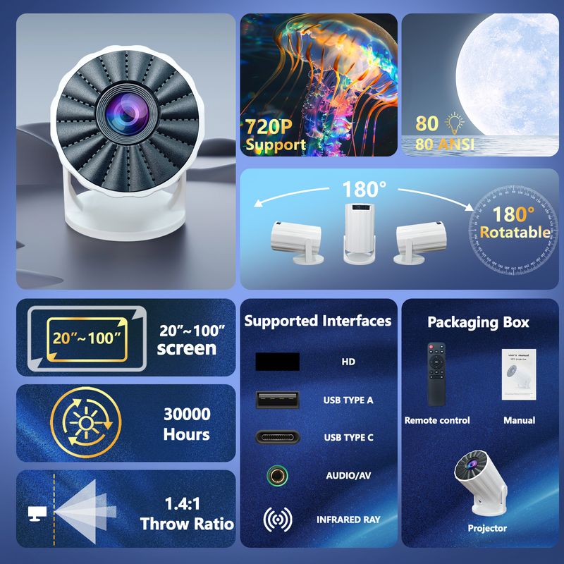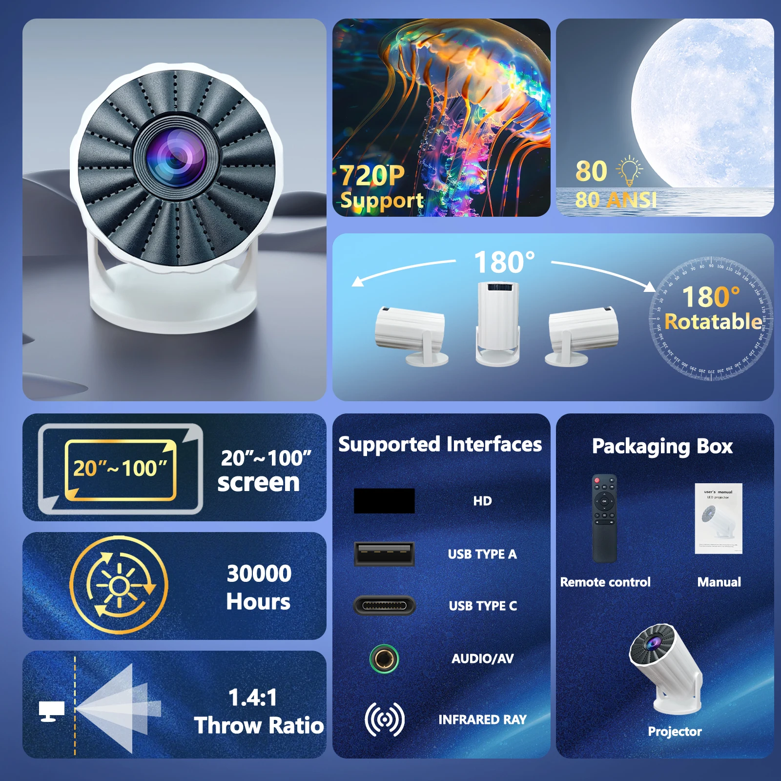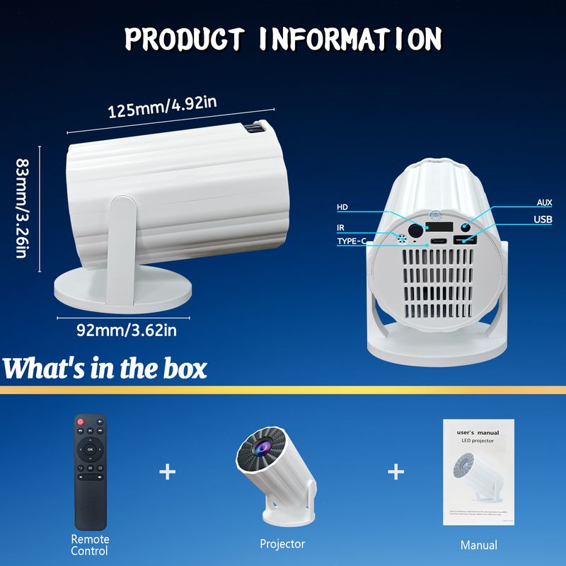 RUSMR RY006 LED Outdoor Mini HD 1080P Mobile Projector USB Children's Projector Ultra-clear Mini Portable Mini Projector