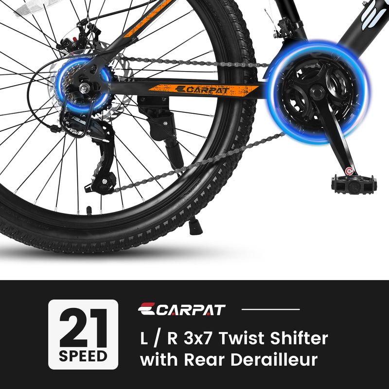 [Excellent transmission]- The Mountain Bike has a Shimano shift handle with the Classic 21 speeds. The front and rear derailleurs allow you to quickly and smoothly change gears to suit a variety of terrains.