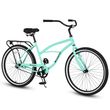 Single-speed bike great for cruising on flat terrain; pedal-backwards coaster brakes for easy stopping.