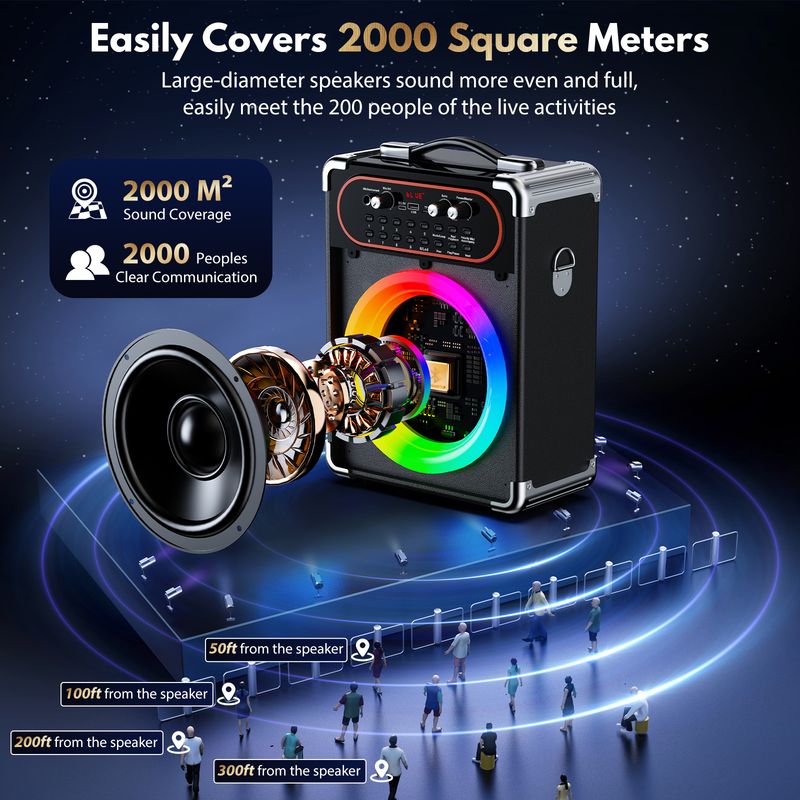 πππ§ππ₯ππ¬π¬ ππ§ππ¨π«π: This portable karaoke machine built-in high capacity battery,which ensure the music going all night for impressive 8 hours. From dusk till dawn, your party or event will never skip a beat. This long-lasting performance ensures your party with endless fun whether you're hosting an all-night party, a day-long picnic or any event.