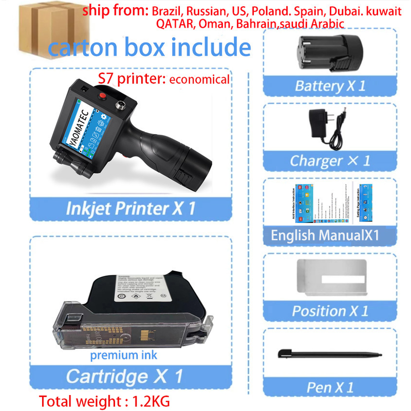 S7 Y7 12.7mm variable QR Bar batch code date number logo expiry date label portable hand jet handheld thermal inkjet printer