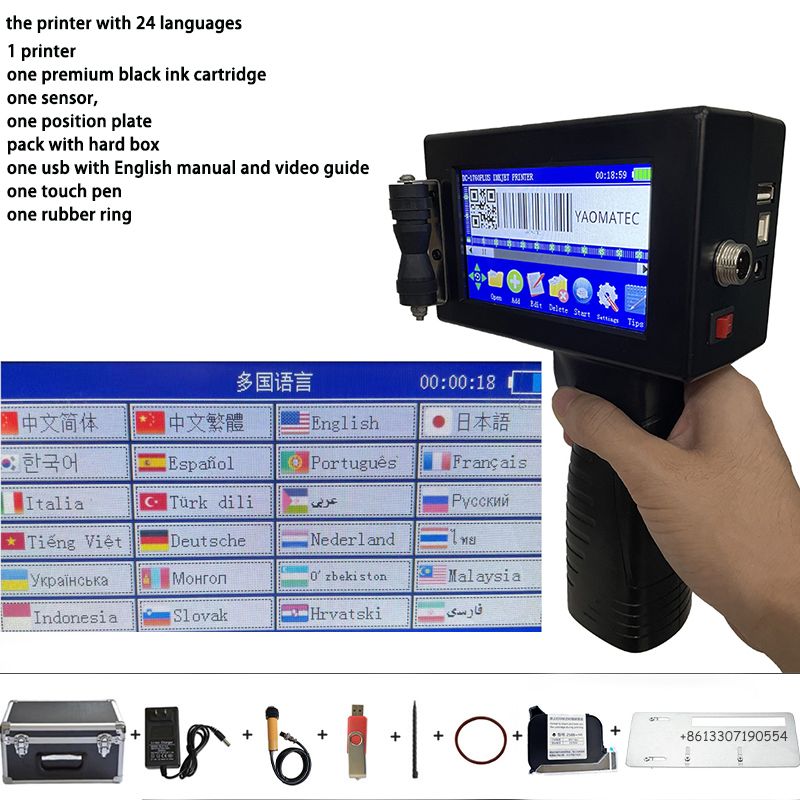 12.7mm variable QR Bar batch code date number logo expiry date label mobile portable hand jet handheld thermal inkjet printer 24 languages no encrypted printer