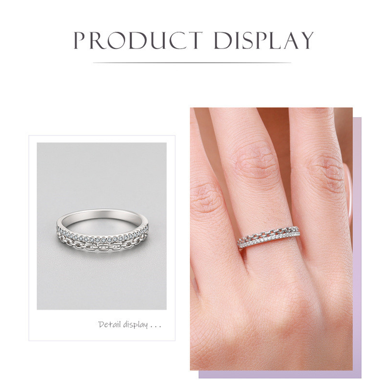 S925 Silver Light Luxury Chain Diamond Ring Silver US8