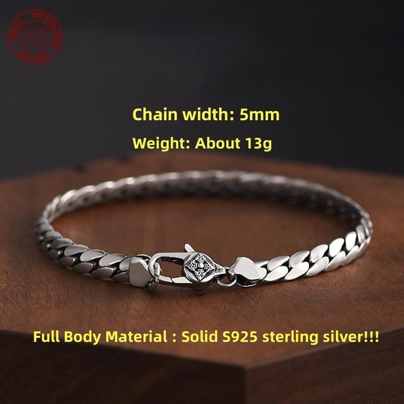 S925 Sterling silver fashion simple elegant Cuban bracelet for men and women handwoven riding crop chain jewelry gifts