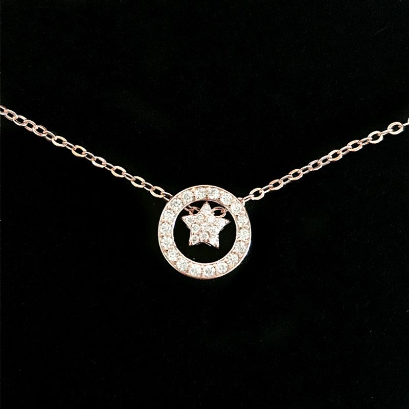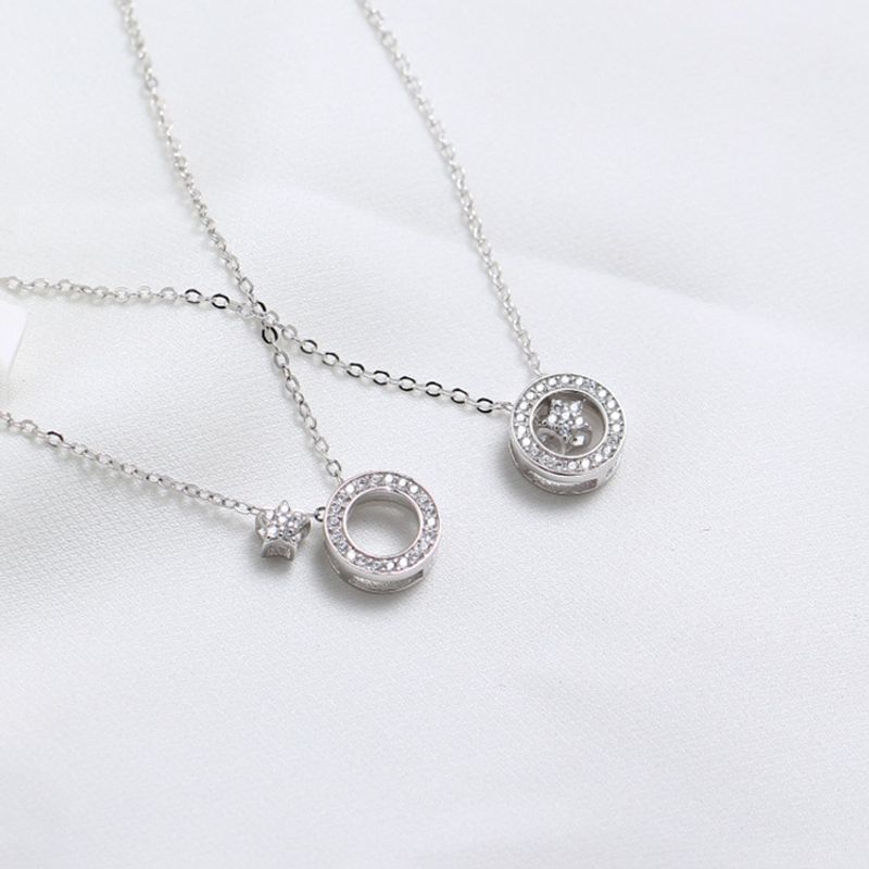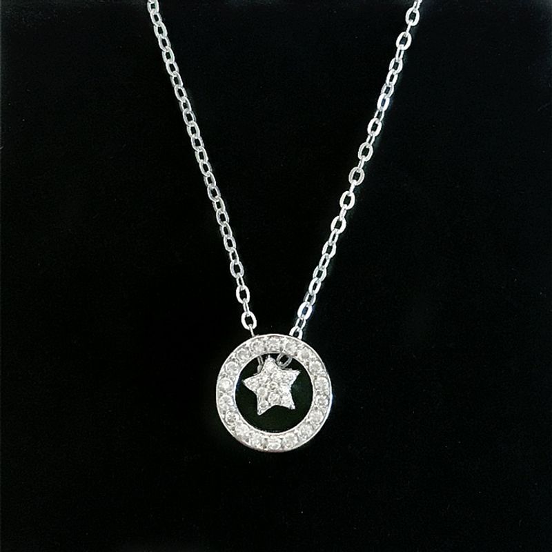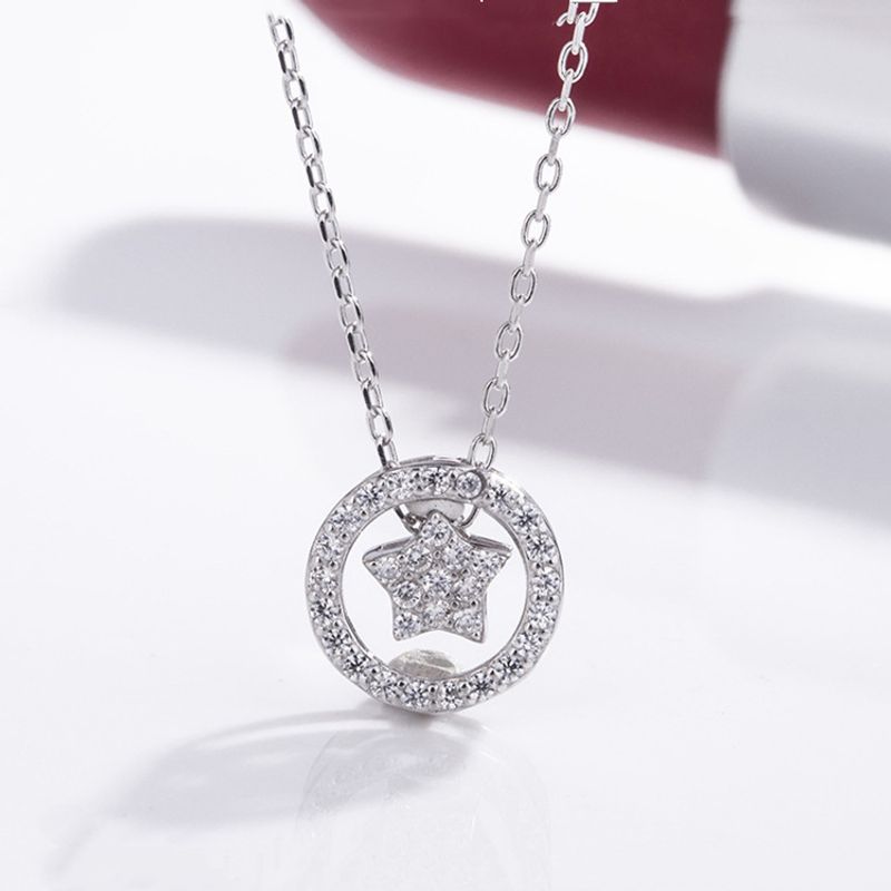 S925 Sterling Silver Full Diamond Star Necklace Female Simple Clavicle Chain Circle Pendant Temperament White gold 925silver