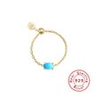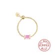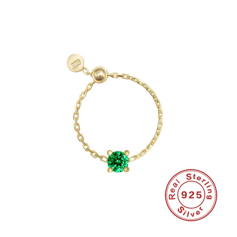 S925 Sterling Silver Light Luxury Inlaid Zircon Adjustable Ring Golden, Round Green Opening Adjustable