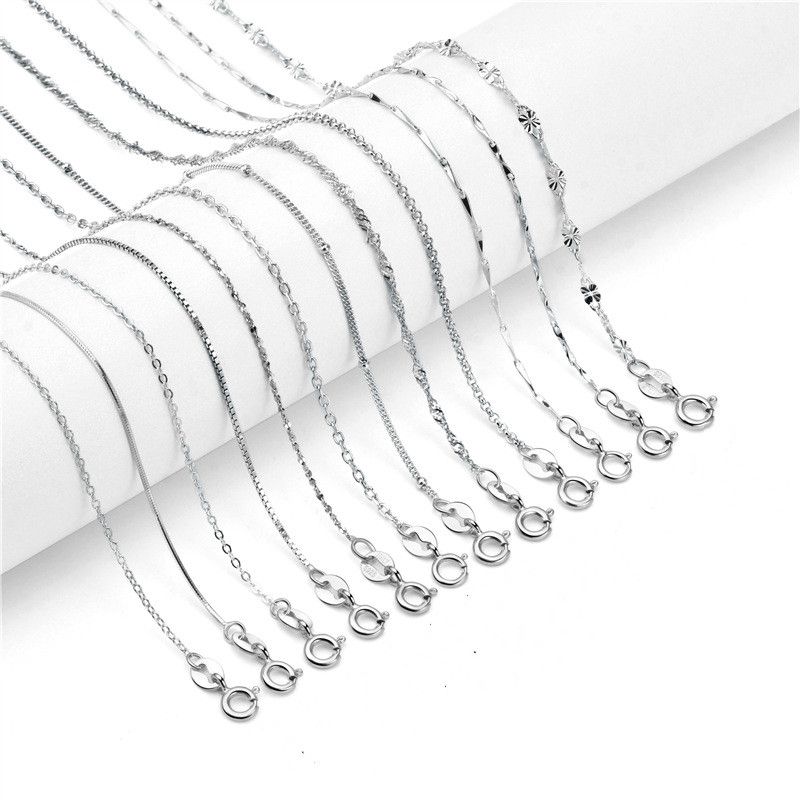 S925 Sterling Silver Necklace Box Chain Ingot White gold 45cm 1.0mm gypsophila chain
