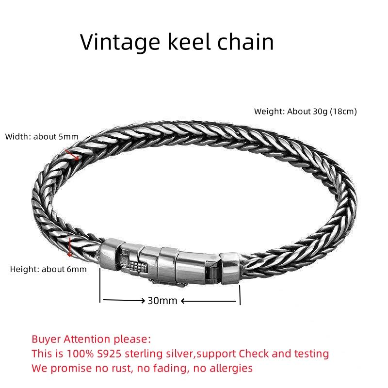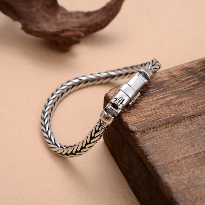 S925 Sterling Silver Simple Domineering 6mm Handmade Woven Pin Keel Fashion Man and Woman Bracelets Luxury Jewelry Gift