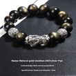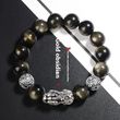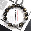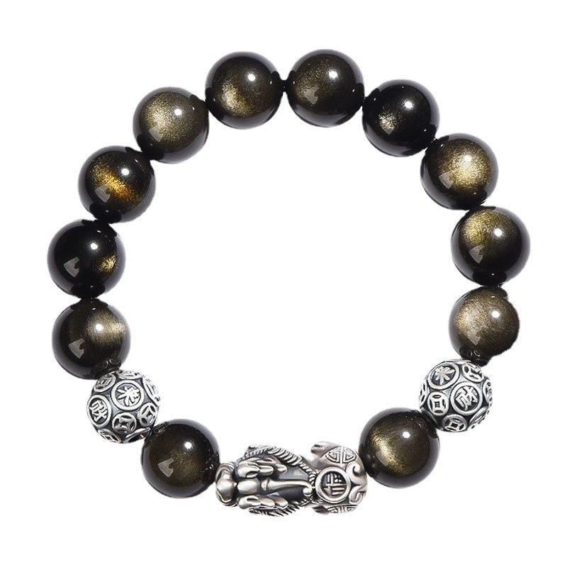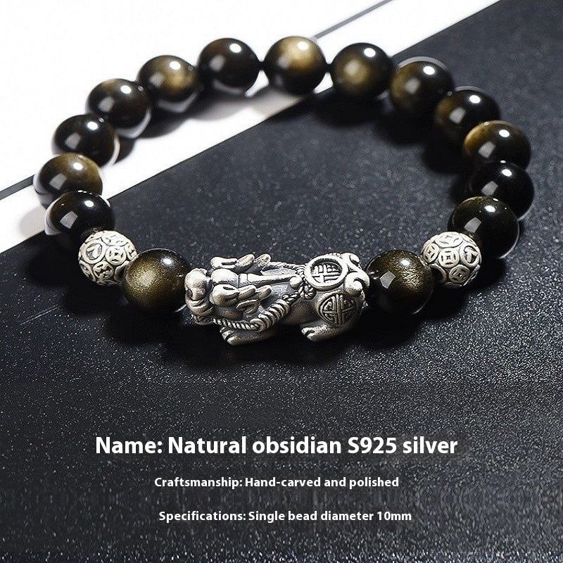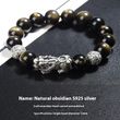 S999 Silver Brave Troops Natural Obsidian Bracelet For Men 12mm