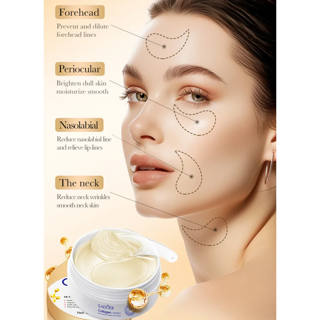 The Collagen anti-wrinkle and firming eye mask is a luxurious skincare product designed to target the delicate skin around the eyes. This innovative mask is infused with collagen, a key ingredient known for its anti-aging properties. Collagen helps to improve skin elasticity, reduce the appearance of fine lines and wrinkles, and promote a more youthful complexion. The eye mask is specially formulated to provide intense hydration and nourishment to the skin, leaving it looking smoother and firmer. With regular use, this eye mask can help to rejuvenate and revitalize tired eyes, giving you a refreshed and radiant appearance.