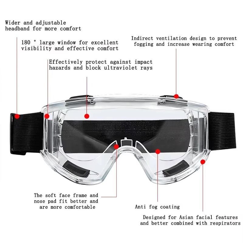 1. Anti-fog, Anti-scratch, Impact-resistant, Anti-splash, Dust-Proof, WInd-Proof.