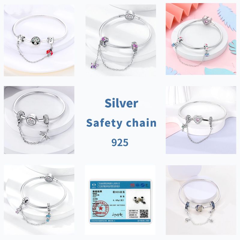 Safety Chain Dragonfly Butterfly 925 Sterling Silver Original Ladybird Hummingbird Charm DIY Jewelry Making For Bracelet Bangle