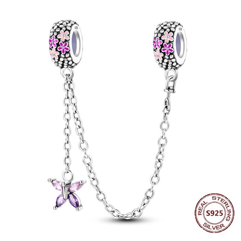 Safety Chain Dragonfly Butterfly 925 Sterling Silver Original Ladybird Hummingbird Charm DIY Jewelry Making For Bracelet Bangle