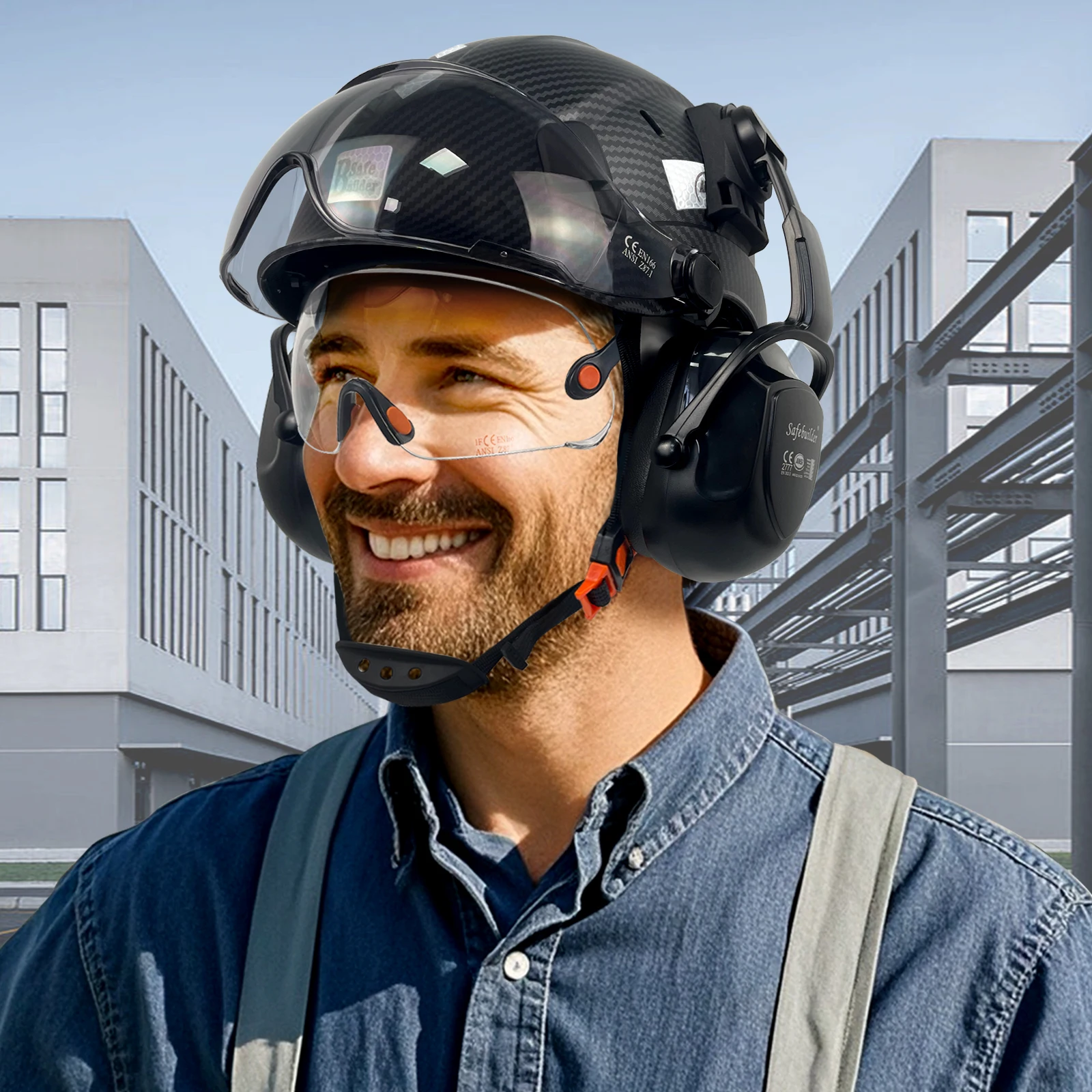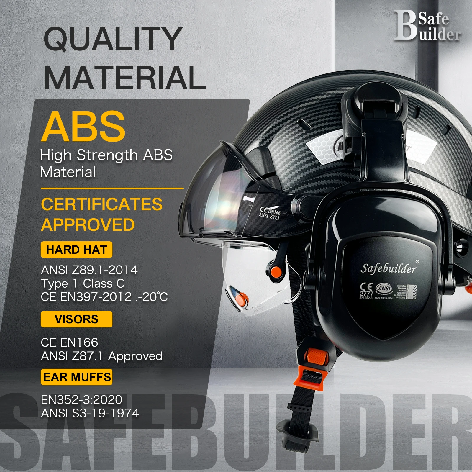 【Certificates Approved】Work Hard Hat meet ANSI Z89.1-2014 ,Type 1 Class C Standards,The visors with CE EN166 & ANSI Z87.1 Approved. The Ear Protector Meet EN 352-3,ANSI S3.19-1974