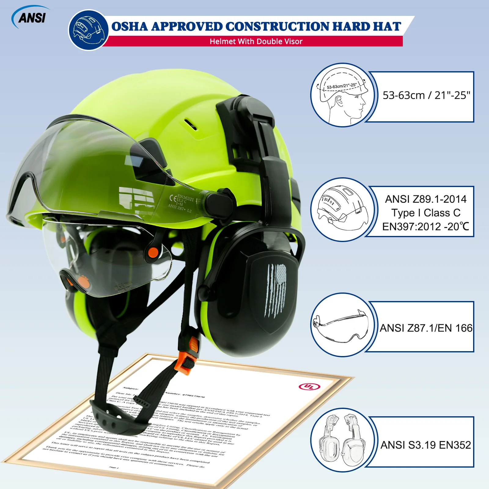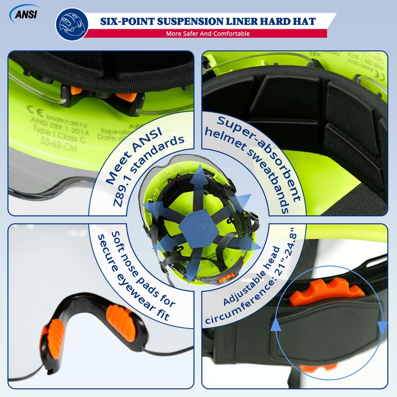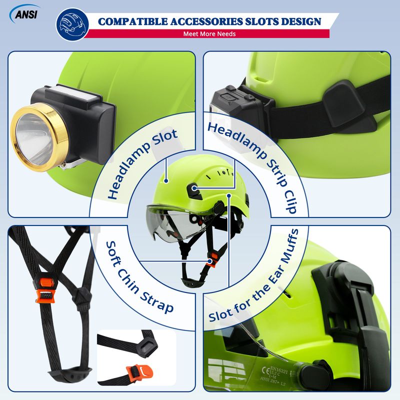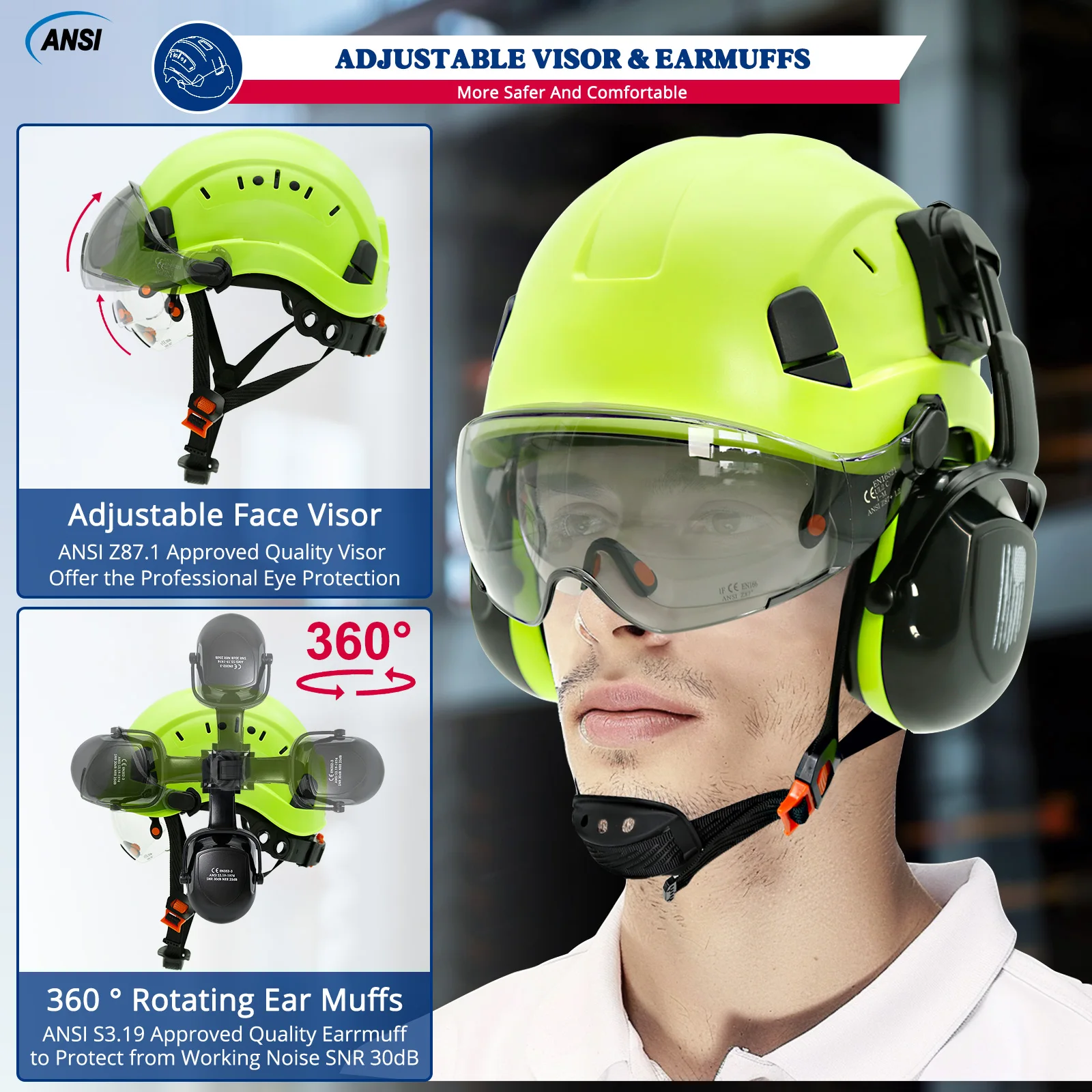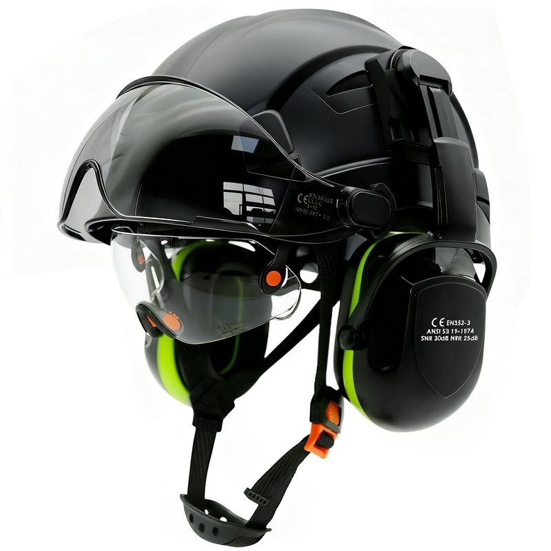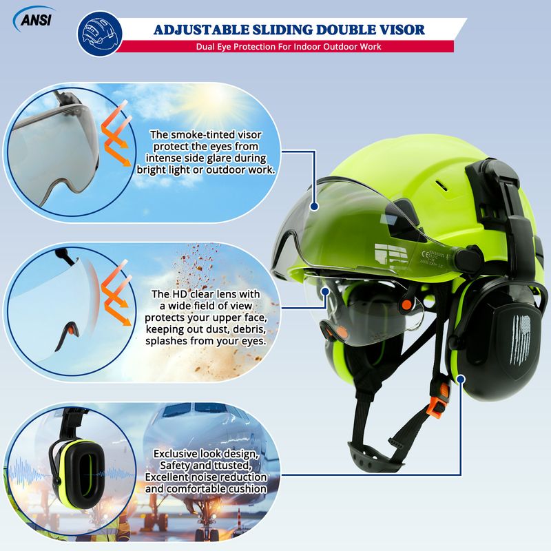 Safety Helmet With Visors Built In Goggles Contrast Color Earmuff Noise Reduction for Engineer Hard Hat ANSI Industrial Work Cap