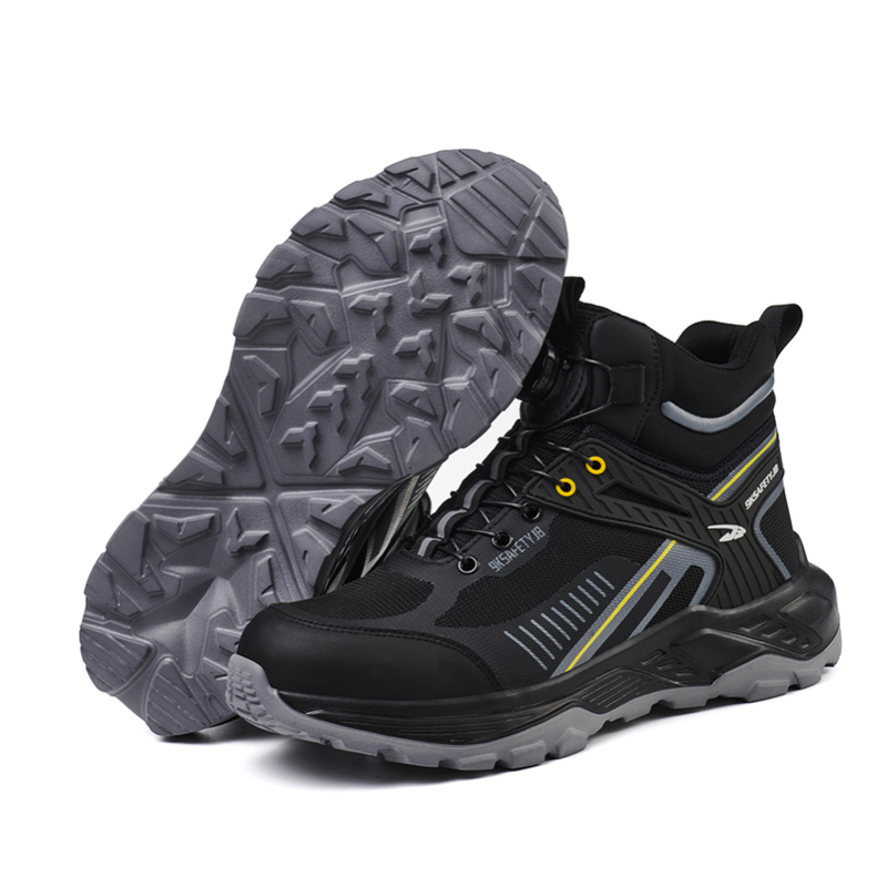 Featuring an anti-slip column, the rubber outsole ensures stable footing on various surfaces, enhancing safety at work.