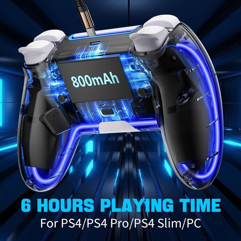 【Built-in LED RGB Lighting】 - Featuring 6 vibrant colors that transition seamlessly between blue, purple, red, and more. The stunning visual display, coupled with ultra-responsive and smooth buttons, ensures that your PS4 controller reacts swiftly and executes commands seamlessly. Experience a new level of gaming immersion with our visually striking and highly responsive PS4 controller.