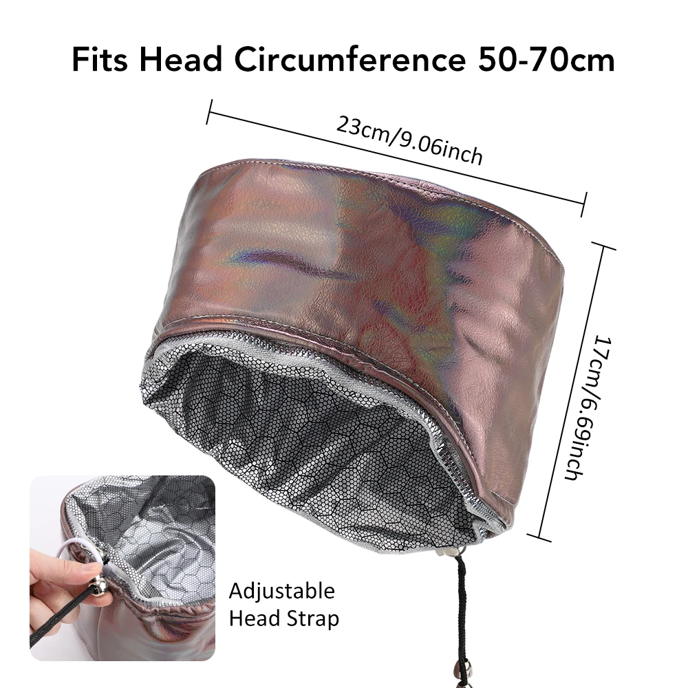 7. The inner liner of this hair steamer hat is detachable and machine washable. With an adjustable drawstring, it comfortably fits head sizes from 50cm to 70cm.