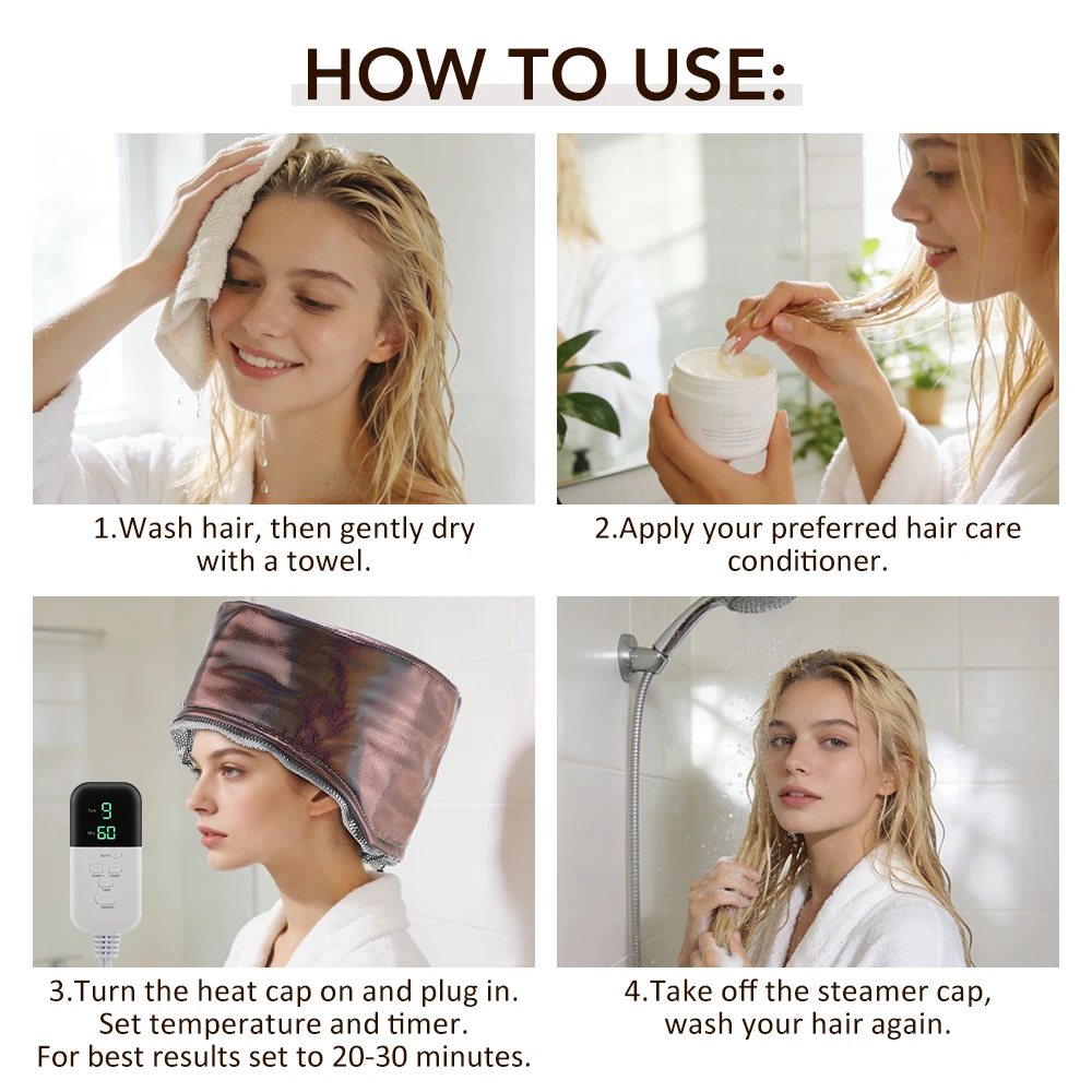 Hair Steamer for Deep Conditioning Thermal Heat Cap 9-Level Heats Up Quickly 5 Time Settings Washable Thermal Spa Hat for Home Hair Care Waterproof Salon Hair Steamer Cap Electric Portable Heating Hat