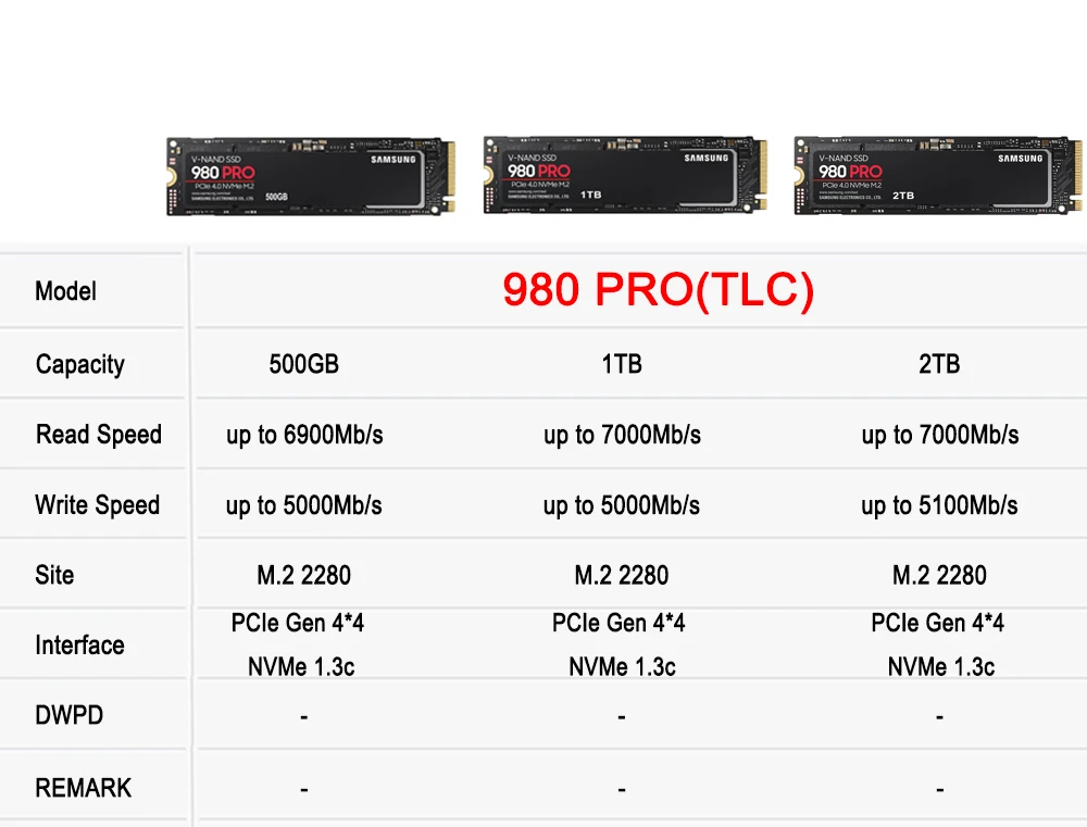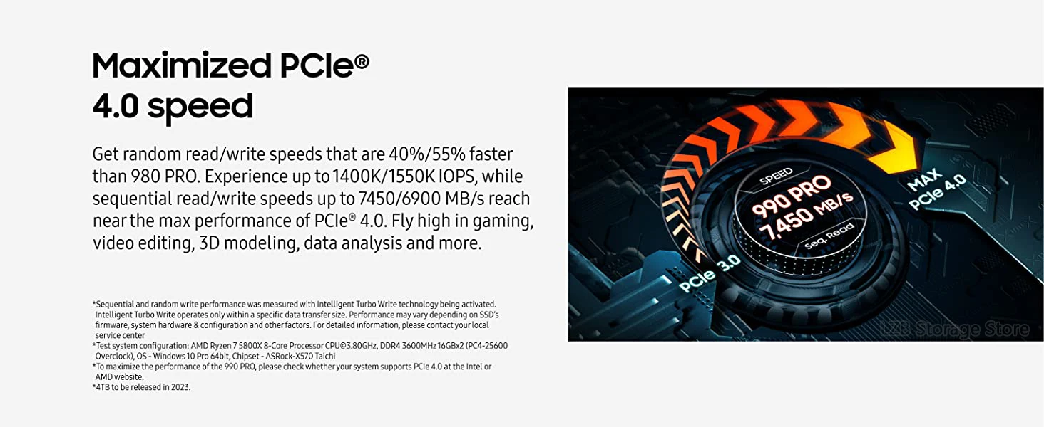 With options up to 4TB, the 990 PRO M.2 SSD offers ample space for your files, applications, and games.