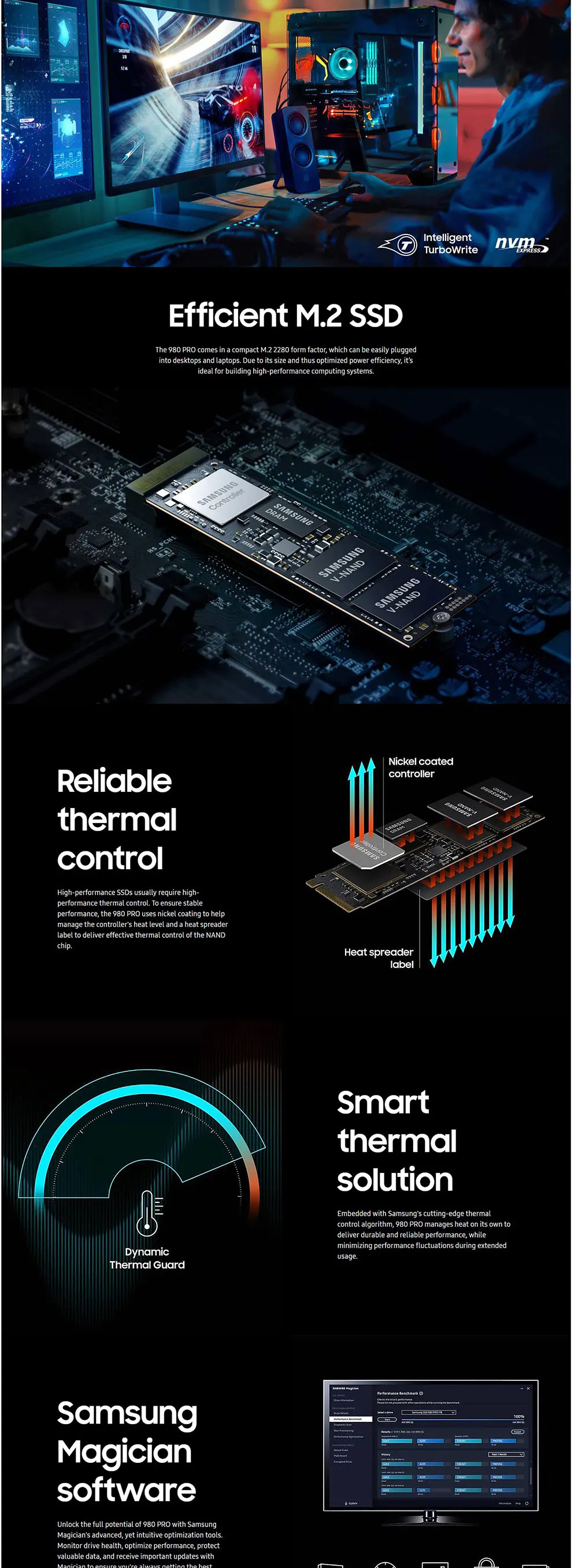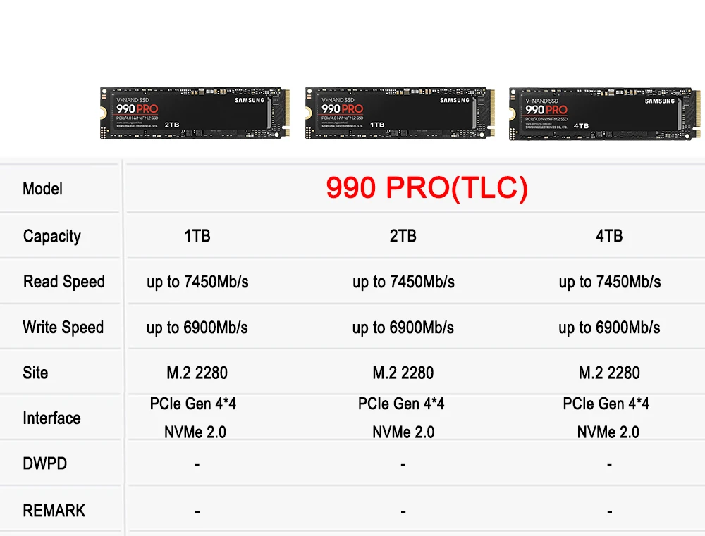 Built with TLC Nand Flash, the 990 PRO M.2 SSD ensures reliable and durable storage for your important data.