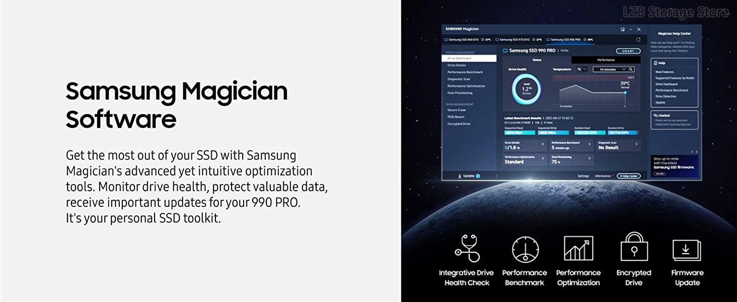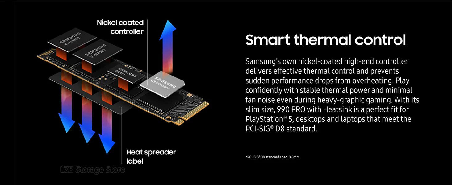 The 990 PRO M.2 SSD operates without a cooling fin, ensuring efficient heat dissipation and prolonged device lifespan.