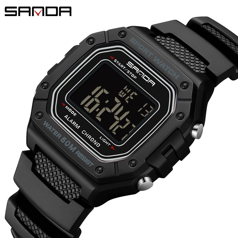 SANDA 2156 Fashion Mens Watch Military Water Resistant Sport Watches Army Big Dial Led Digital Wristwatches Stopwatches For Male