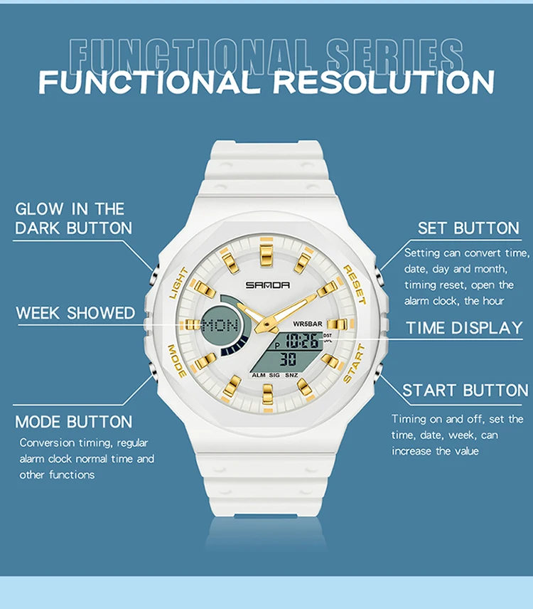 SANDA Outdoor Sports Watches Men Ms LED Digital Watches Military Waterproof Date Electronic Watch Boy Girl Relogio Masculino