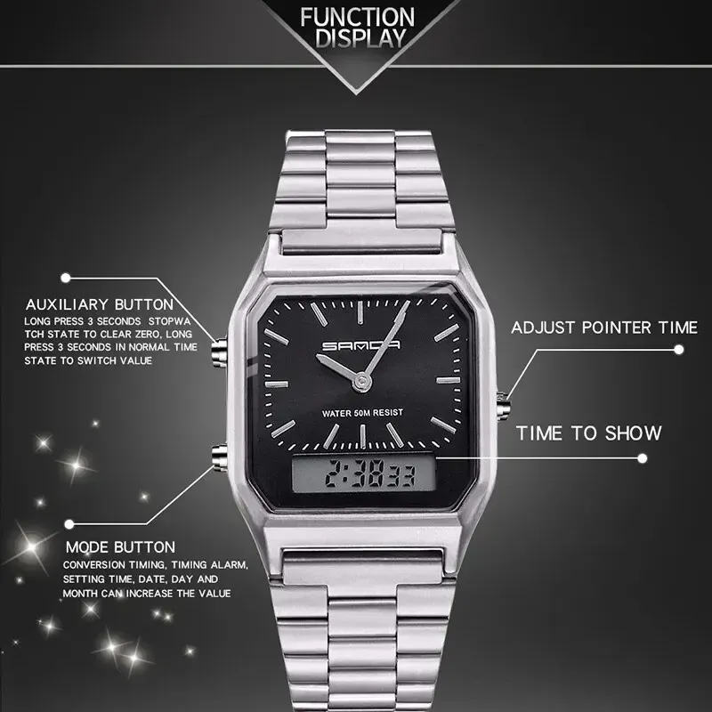Functions: Waterproof, automatic date, alarm clock, LED display;